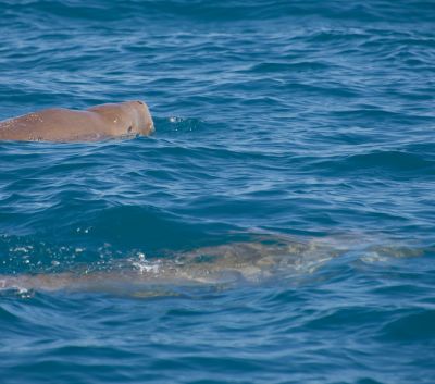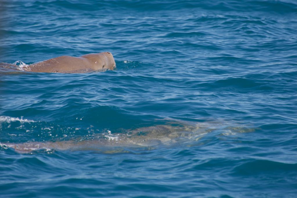 Orcas are prevalent at this time, attracted by the Humpback calves with research suggesting up to 15% are lost due to attacks. Pseudo Orcas, Minke Whales, Short-finned Pilot Whales, Common Dolphins, Spinner Dolphins are occasionally sighted whilst Bottlenose and Australian Humpback Dolphins are abundant as they prey on fish and squid. The Ningaloo area supports 10 percent of the world’s Dugong population, with these passive creatures occasionally spotted coming to the surface for air, in-between feeding on the roots & shoots of the seagrasses in the Ningaloo shallows.